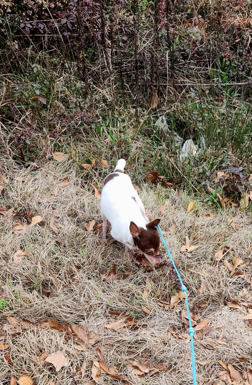 Chipworth's Valentine Special (Buddy) takes a minute from his walk to just be a dog and explore the grass. He has a long way to go before I can put a training collar and leash on him, but he's learning a lot on a show lead.
