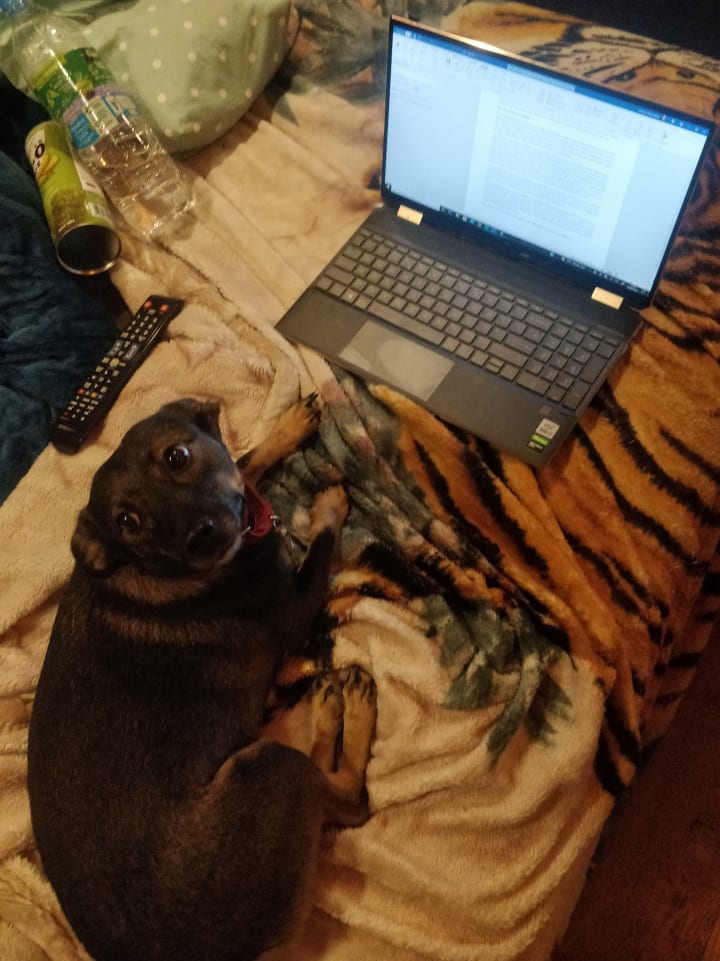 My rescue pup keeps me sane when I'm working all hours of the day!