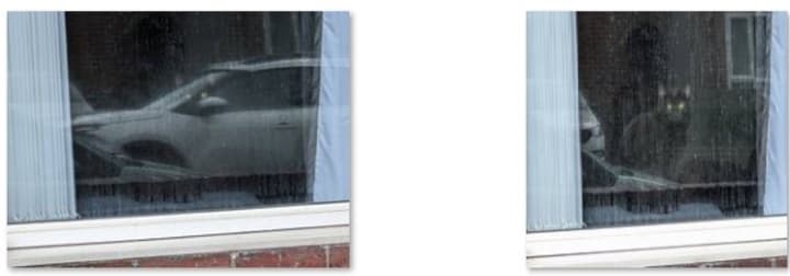 It was raining and it looks like the black cat in this window is almost a ghost, I didn't do anything with this, it is just the way that it came out.