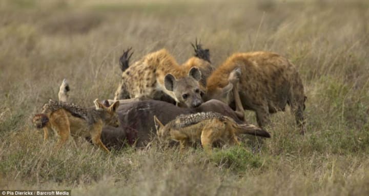 Hyenas are considered timid scavengers, but they spend most of their time hunting and killing their prey.
