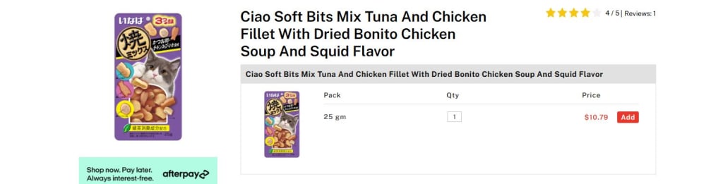 Read this blog to know - Ciao Soft Bits Mix Tuna And Chicken Fillet With Dried Bonito Chicken Soup And Squid Flavor