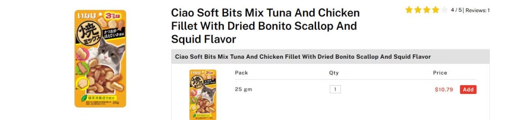 Read this blog to know - Ciao Soft Bits Mix Tuna And Chicken Fillet With Dried Bonito Chicken Soup And Squid Flavor
