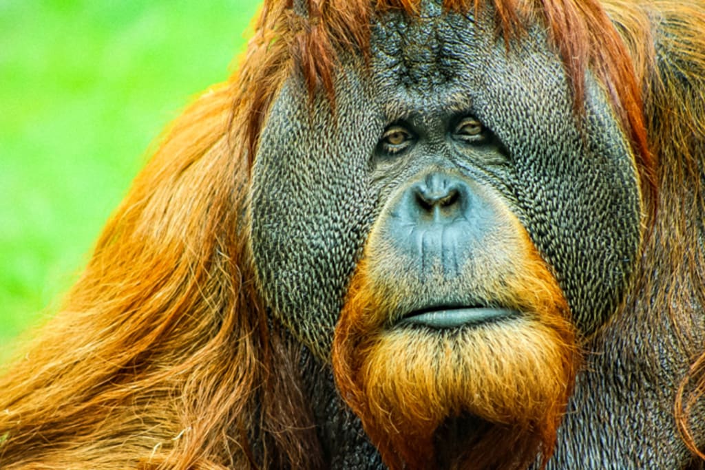 Sumatran orangutans are found only on the Indonesian island of Sumatra. They can spend up to two weeks in the tree canopies without touching the ground. This is where they find their food and hydration, make nests to sleep, court and mate, and teach their young to do the same. Their young aren't just litters thrown out of the nest in a few weeks, either; the Orangutan raises their single-born children for seven or eight years at least.
