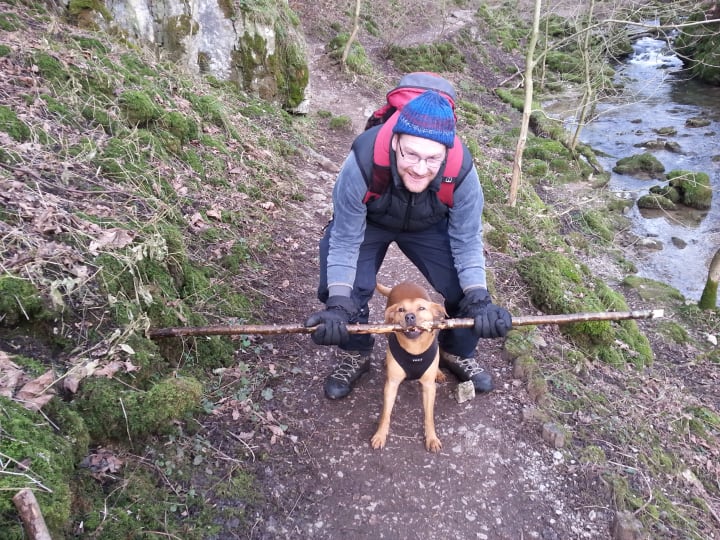 Dave has climbed all three of the Yorkshire three peaks (Whernside, Pen-Y-Ghent, Ingleborough) - and probably scampered up each one three times in the time it took me and my pals to struggle up once. Nowadays, sadly, Dave needs to be carried upstairs to go to bed. I just wish I could carry him up with me when I take my final sleep.