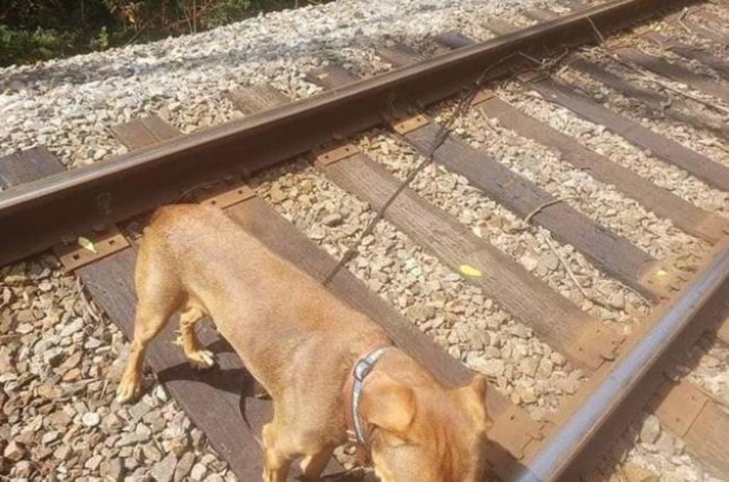 With a feeling of unease, Paul took his wife out to check and found a dog barking on the railroad tracks at the back of his yard, while barking also spinning in place.