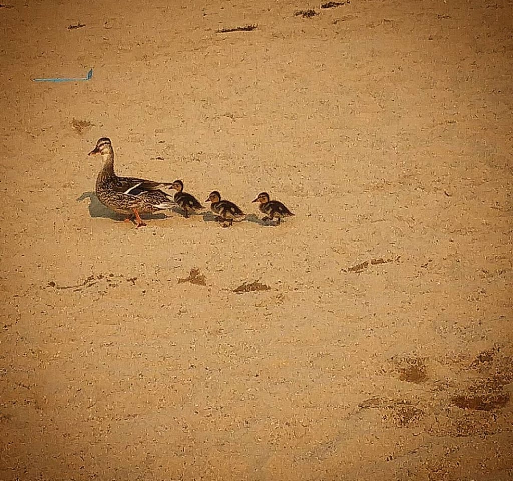 Duck and Ducklings Cross Open Sandy Beachside on a Beautiful Summer Day in the Amazing Okanagan Region of Beauty and Bliss