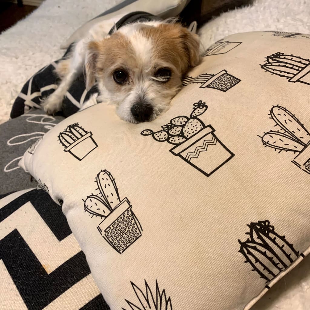 We had adopted Beeker, our terrier mix, in Los Angeles in 2011 as a puppy. I had been looking at him online and then Dakota surprised me with him on my birthday that year, after I had lost a dog. We decided to repeat the same death-equals-new-dog trend and started looking at an animal shelter in Bastrop, Texas. Beeker is on the fluffier side, but his hair is also thin and whispy. We came across Capri, and her profile looked like she was a smaller version of him with the same texture, but different colored fur.