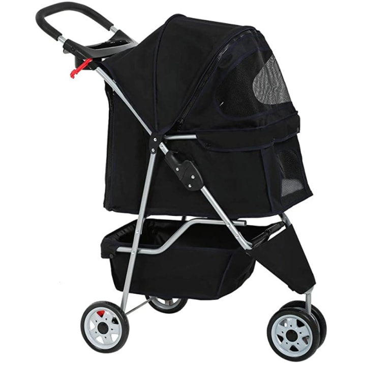 What sets this pet stroller apart is its user-friendly design. Assembly requires no tools and can be done in just a few minutes, making it incredibly convenient for busy pet owners. When you're done, the stroller easily collapses for hassle-free storage, making it perfect for travel and camping adventures. Its lightweight construction and simple folding mechanism make it a breeze to handle and transport.