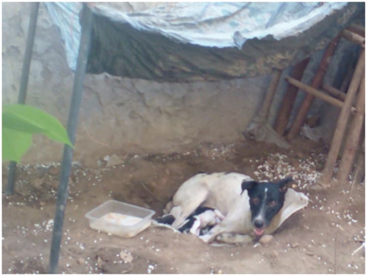 So i was very surprised when a female dog lodged herself in a lightly dug-up pit next to a wall close to my house; to deliver her puppies. I still remember the bright noon of 24th June 2018 when i heard some noises outside. I immediately went out and saw the local “Presswali” (In India we have cloths ironing services available right near the house serving 50-70 households on an average) some neighbors gathered and was astonished and excited as well to see 6 toy-like puppies hugged underneath the supreme lady dog who was still recovering from the exertion of bringing 6 new lives. OMG ! It was a stunning sight, i instantly fell in love with the puppies. I can never forget the fear in the mother dog’s eyes seeing so many humans gather around till she realised that we all were well-wishers. Since she was known to one of the neighbors, she allowed her to come near and fix a shelter and leave some milk for her.