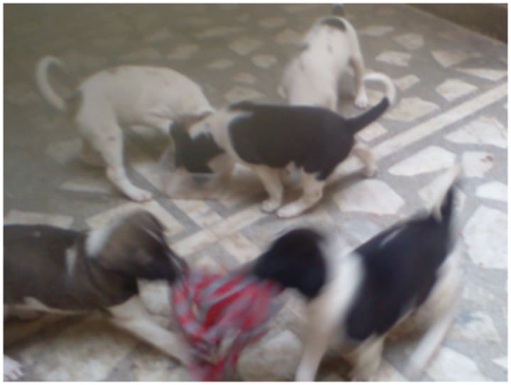 By 2 months they were big enough to run a bit and explore the outer world while their mom also started going out. But they stayed together and would come back soon. Tragedy struck when in less than about 2+ months one of them jumped in front of a moving two-wheeler and died instantly. It was indeed a very sad moment and i could not believe my eyes when i saw their mother crying, the remaining five maintained a pin drop silence. It went on for 2 days and then they were back to their notoriety they were out running all over again. 2 months of dog is like 2.5-3 yrs in humans. They were out to test the strength of their teeth. See this picture of how they are playing with a towel.