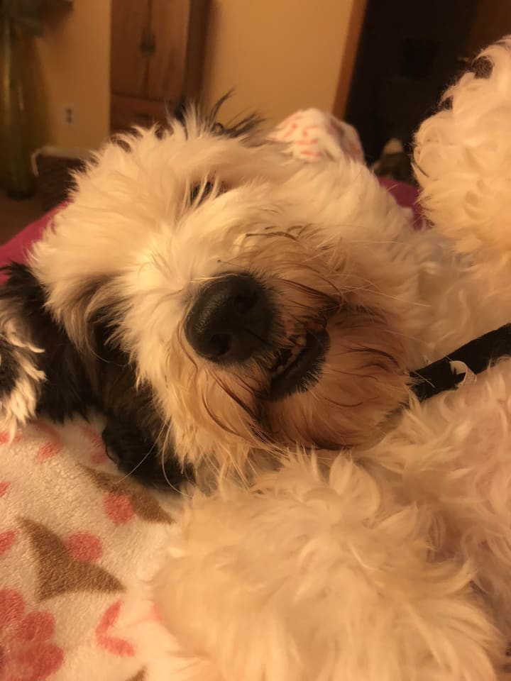 Francie is my nine year old mini Sheepadoodle. I thought mini meant that he was going to be small but he’s a little on the big side! Either way I love him to death. I grew up in a family that loved cats so I never really knew much about dogs. I assumed I would always have cats since that’s what I grew up with but I am definitely a dog person. When I got Francie “Adopt Don’t Shop” wasn’t advertised that much. At least, I don’t remember reading about it. So I did purchase Francie from a breeder but honestly I don’t think anyone else wanted him. I sort of sensed something was up with him when out of a litter of about ten puppies he was the only one available. He was spoken for at one point but that person backed out. Then when all the puppies in the litter were posted online every single puppy was posing in a little tub. But not my Francie...he was sitting on the ground, no tub and no pose! Regardless of my hesitation, I went ahead with my purchase of him. I often wonder what would have happened to him if I wouldn’t have taken him. He was born in Texas and I live in Pennsylvania so there was no way for me to visit with him beforehand.