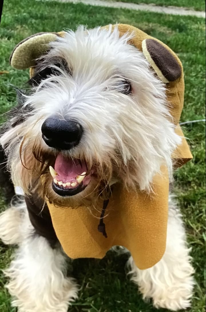 Just like parents can’t choose their children’s personalities, dog owners can’t choose how their dogs will behave. It’s a little funny though because Francie is so strong-willed and downright bad most of the time, but he loves going to the veterinarian! He is well-behaved when I take him and he just loves the attention. My other dogs shake like leaves when they have to go but not my Francie. I always dress my pets up for Halloween but I have to wrestle to get a costume on Francie. Many years he ends up not wearing one but some how I got him in one this past year.