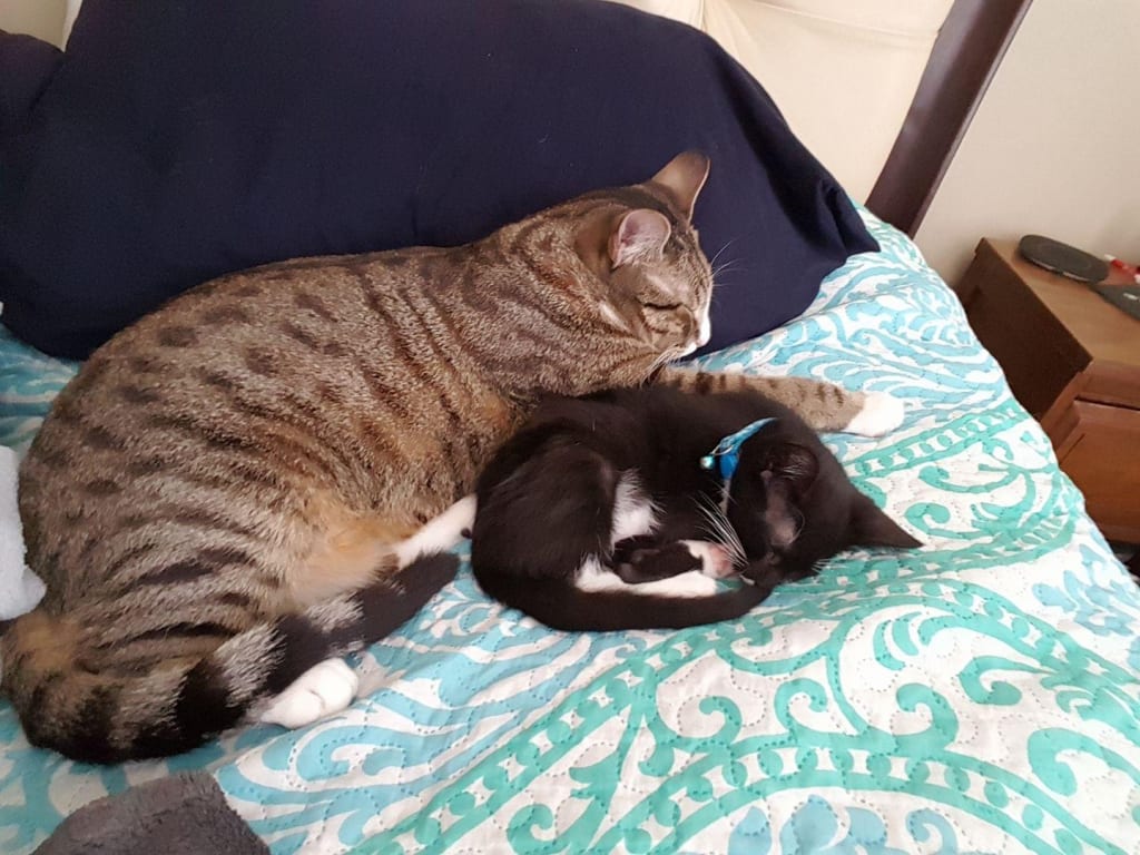 Beaten up, cold, and scared, this six week old kitten was carried into the dealership I worked at. Desperately, this lady asks if there is anyone available to foster. “I found him in the center of a few dogs, they looked like they were going to eat him! I rushed towards the group, pushed them off, and saved this kitten,” sharp breaths between her words heightened the sense of emergency. He was covered in fleas and could barely see. One could easily identify he was cold and hungry. Looking like he had already given up on living, he curled into the corner of my desk by the printer, seeking for warmth. I called my parter and told him the details. Not even thirty minutes pass when he shows up to pick up the kitten and take him home. My shift ended late, so the kitten was already bathed and curled into warm towels by the time I returned home. The next morning, we took him to the vet to make sure he wasn’t infected with any diseases and to find out how old he was. She informed us he was only six weeks old and was healthy, besides the worms and fleas. After a few shots and flea baths, he was as good as new. We brought him to our humble abode and began the introductions to our other cat. My cat, Poseidon, began sniffing the kitten and low growling as he lightly batted his tiny skull. The kitten jumped at every movement Poseidon would make and poofed up every moment he discovered something new. Days progressed as did their relationship, and soon, they were cuddling while Poseidon adopted the role of father. The kitten had evolved to Gambit and he was now part of our small family.