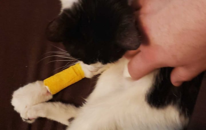 Before the summer, he got a blood clot in his leg which made it difficult for him to walk. The vet put him on blood thinners which seemed to make a difference eventually. He was also found to have hyperthyroidism and kidney issues.