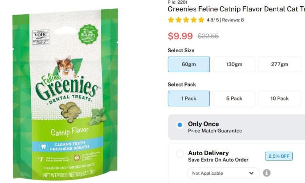 Try other flavors like chicken, tuna, or even catnip. Greenies has something for every picky palate.
