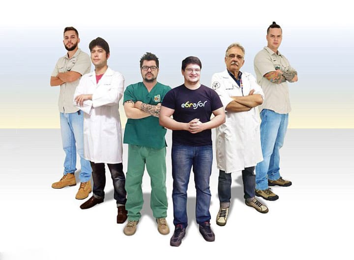 The animal rescue group that saved the tortoise is called the Animal Avengers. It is made up of a 3-D designer (Cicero Moraes), four vets (Roberto Fecchio, Rodrigo Rabello, Sergio Camargo, and Matheus Rabello), and a dentist (Paul Miamoto).