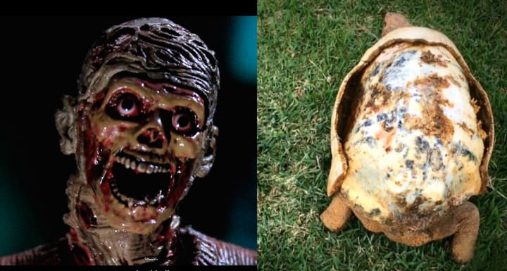 The female tortoise was given the name Freddy since her burned back resembled Freddy Krueger's face. According to Moraes, the 3D designer.