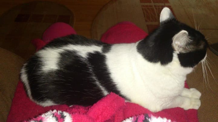 "Wait here and be good. We'll go get her and come back," my parents said to me. Like if there was any way to stand still in the face of such utter joy. Not even my livid grandmother (still reeling after being bested by a cat) could put a damper on my good mood. And so, exactly 49 minutes later, the door opened at last and in they came. Approaching on silent feet to the hallway with the utmost care, I craned my neck to see her, but the poor thing was clinging to my father for dear life, with her head burrowed deep in his chest. Still, it was clear that she was the cutest thing ever, with luscious black and white fur and a crown-like pattern atop her little head, barely visible from her hidden position.