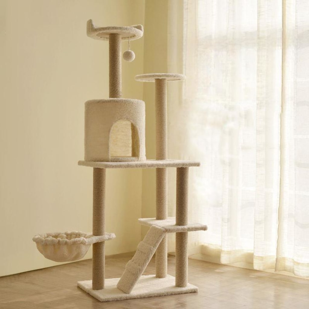 Hiding and perching: Multi-level designs often include cubbies or hammocks that give cats quiet spaces to rest and recharge.