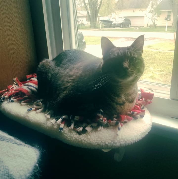 Tully was thrilled! A new thing for her to lie on. Memphis was annoyed. Not because she could get on the table and he couldn't, but because she was in his room. At some point last summer, the cats had divided up the house.