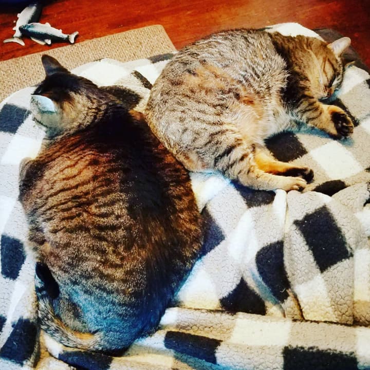 Due to an injury, I have been home again for the past month, and the cats have slipped back into the "old" routine. When everything reopens again, and my schedule goes back to "normal" (is it still normal if it's been a year?), I know it will take them time to readjust.