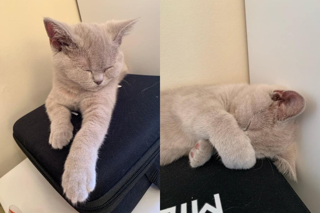 She certainly became an expert on sleeping anywhere, including my chest as I was working, joining work conferences and typing: