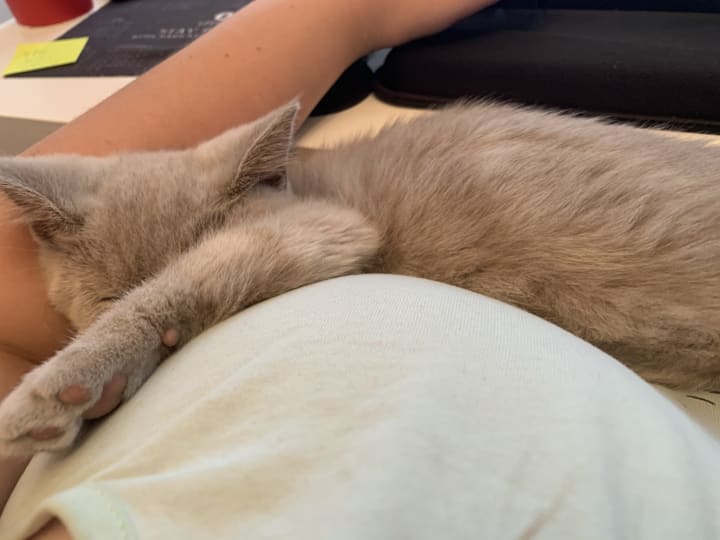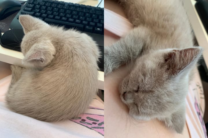 So I went to a breeder. I paid the deposit, let my mom choose our little furry baby – and low and behold, it was delivered to our home on a Sunday. And trust me when I saw this: when I saw my little Chelsea for the first time, I couldn't care less about where she came from, whether it was a breeder, a shelter, a friend, or elsewhere. I fell in love right away, I cried with happiness for the first week, and I felt a constant need to love her, protect her and be a good cat mom for her. Also, it turned out I got a coworker!