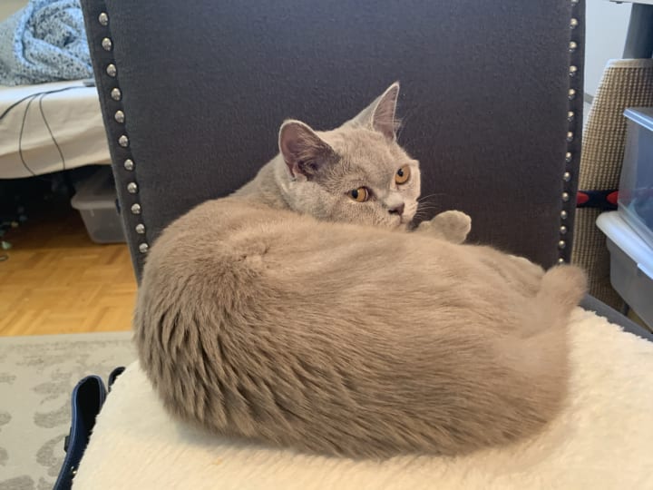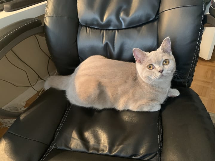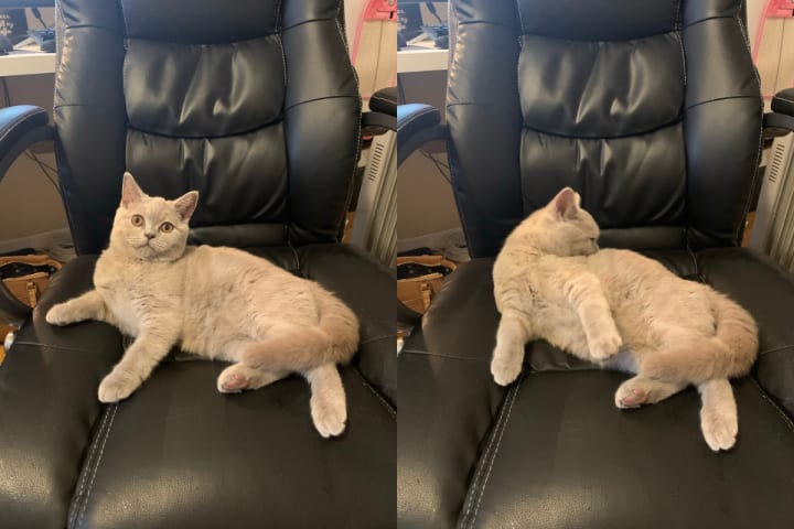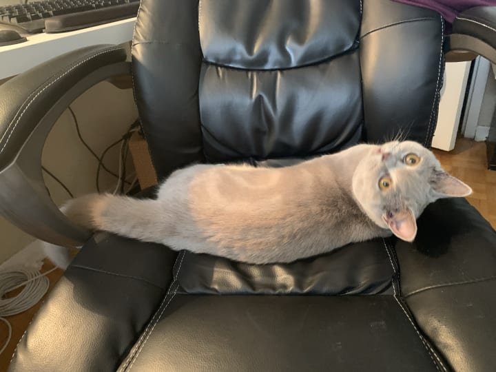 Chelsea truly believes she's the boss, and she takes over my work chair all the time: