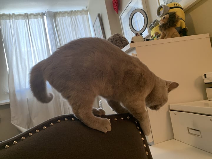 She never really cared about me, her cat mama, having the need to work to pay for her toys. In Chelsea's mind, she was contributing to the household by being near me at all times:
