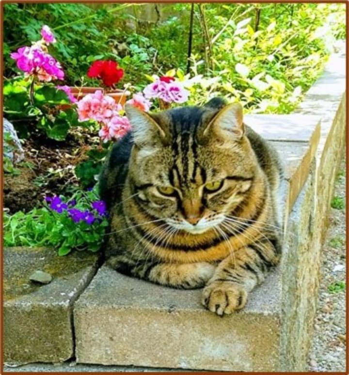He entered Tom’s life as a wide-eyed, big-eared kitten growing into a large handsome tabby cat who favored the comfortable lap as well as the adventures in outside landscapes.