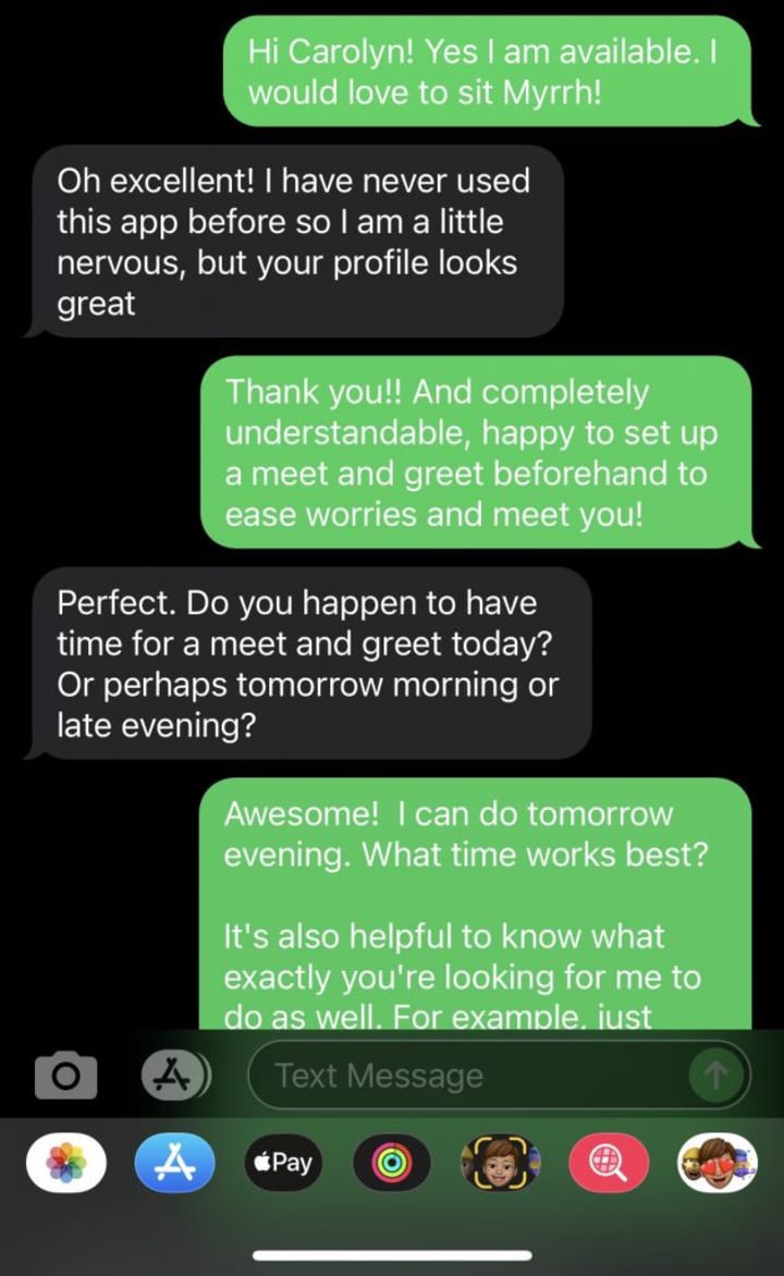 For each of these, I recommended doing a meet & greet mostly to start building your relationship with your client and make sure everything is safe & comfortable on both ends. Pay attention during the meet & greet so that way you don’t have to ask a bunch of questions later!