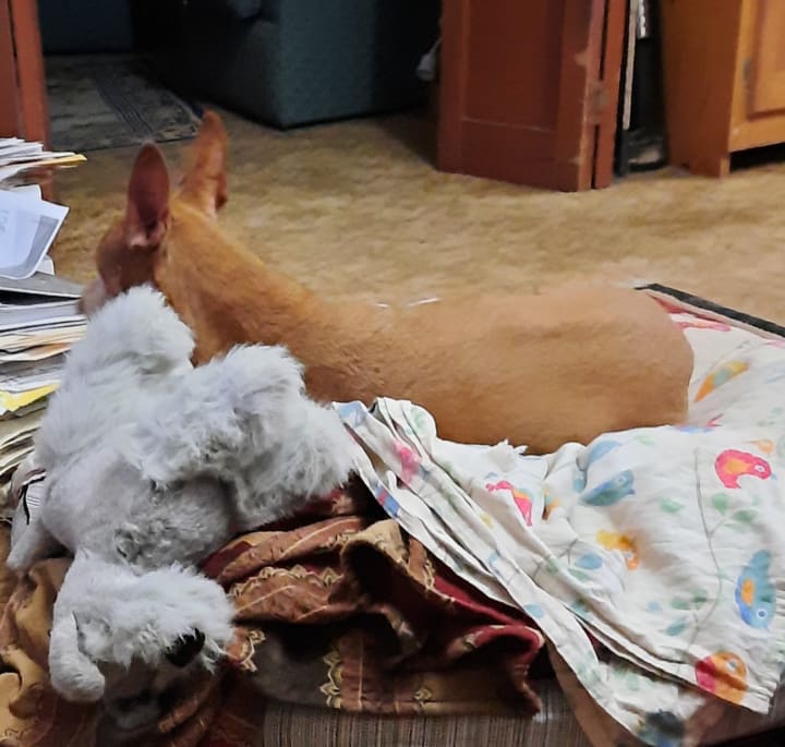 We no longer have any Schnauzers, and never will again, there is too much work involved in keeping them neat, and I neither, nor am good at such work, so it's smooth coated dogs for us these days. Our current dog is a lovely Pharaoh Hound, Missy, who is from the last litter of dogs we bred. Missy is thirteen and a half years old now, and very much slowed down, but she still enjoys her life.
