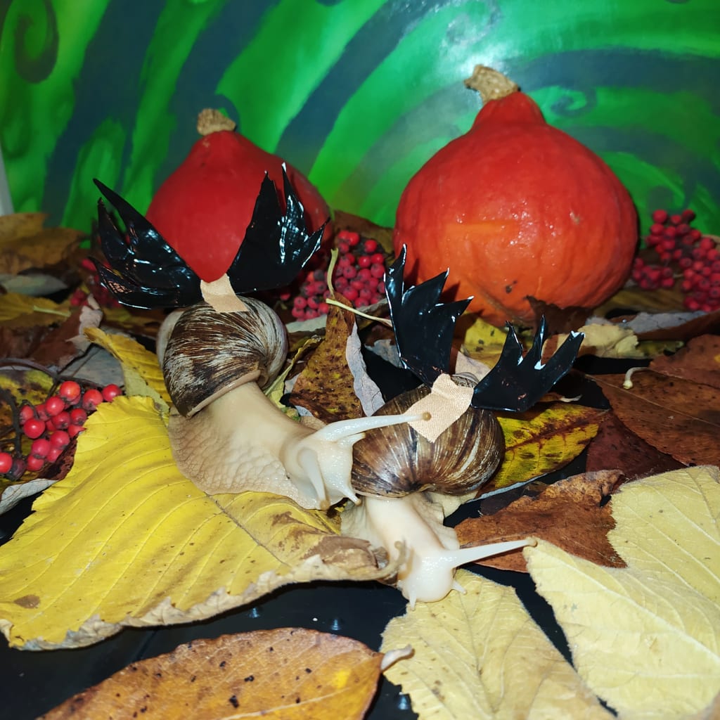 Meet Jaspi and Eglantine, giant African land snails turned into Halloween bats.