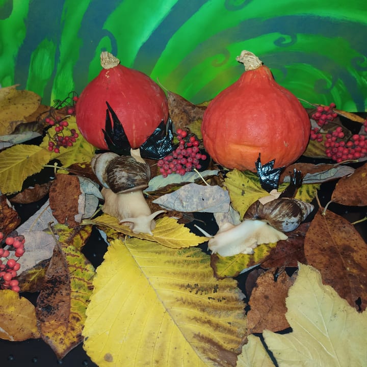 My snails wish you a happy Halloween with lots of tasty pumpkins!
