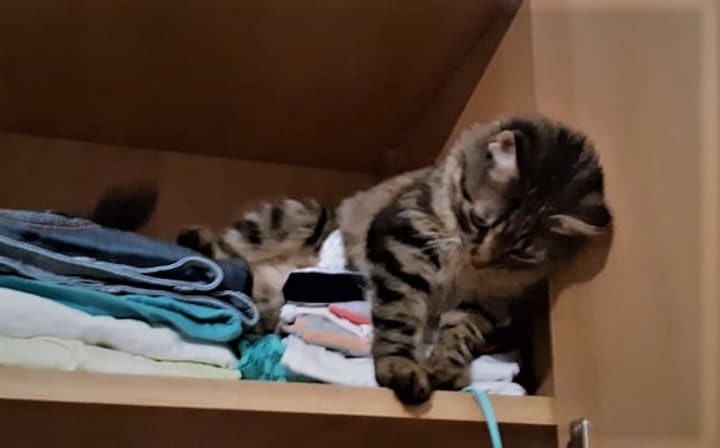 She’s an enthusiastic, playful, adorably curious, and stubborn kitten. Occasionally, her last attribute could get the best of me.