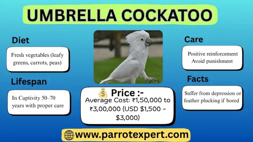 This statement can confuse about this . Umbrella Cockatoos are perfect for seasoned bird owners who can offer daily interaction, stimulation, and appropriate care. This is because; they have to need high emotional, loud vocalizations, and social demands.