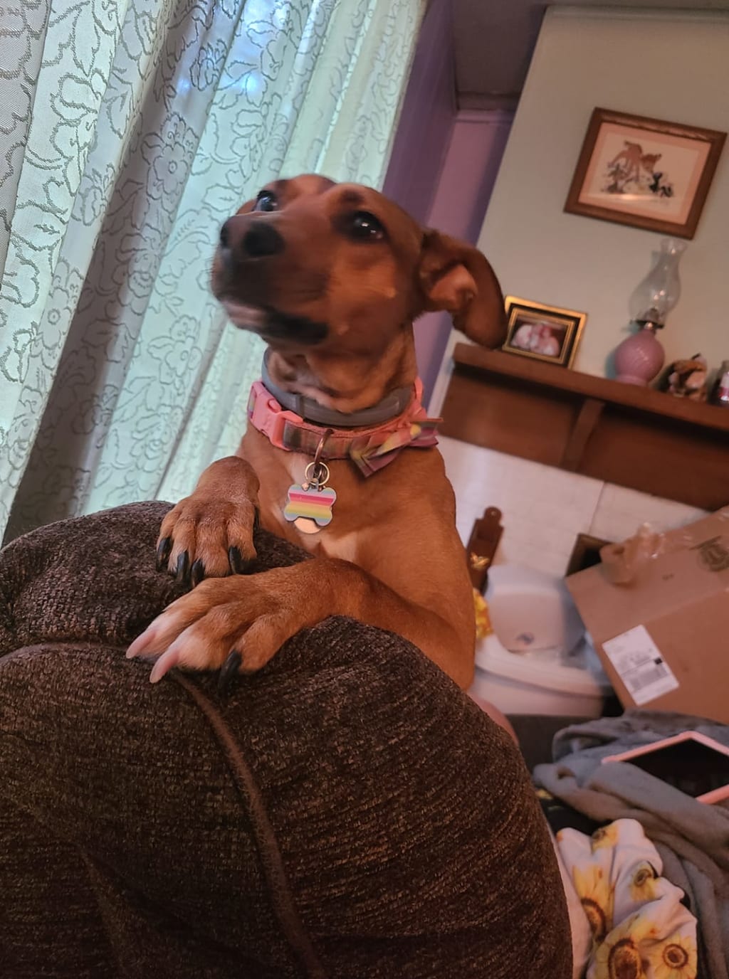 She happily got a leash and got this little girl out for me and my wife to interact with. I asked all the questions I could think of. Was she spayed. Did she come chipped. What was her story. This little girl had been surrendered by a previous owner. And apparently had been returned previously for being "too energetic".