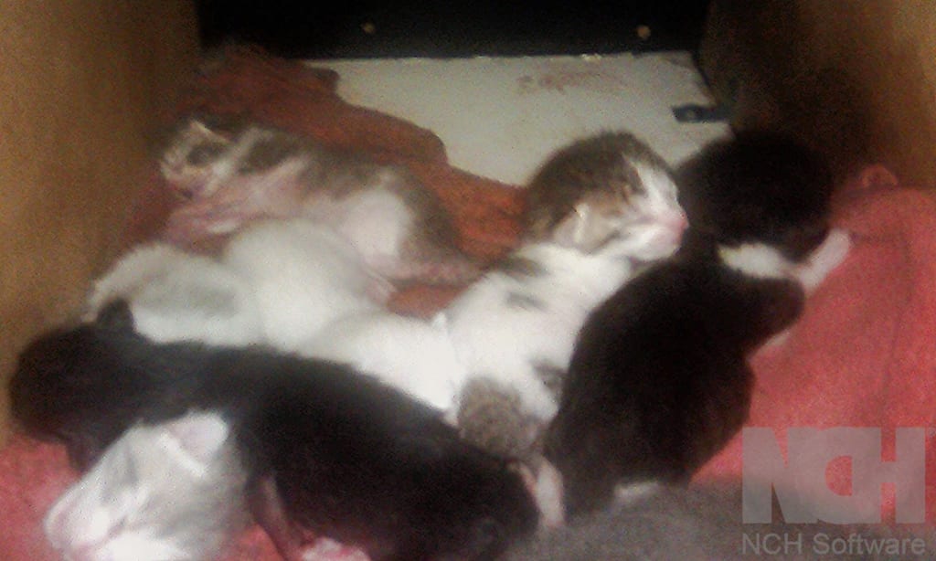 It was the weekend of my birthday, she wound up having seven kittens. Two black, one gray, one white, two with solid patches, and one that looked exactly like her. About a week went by and we lost one of the patches. It was sad. So, I kept a better, closer eye on her with them. Constantly had to move her off of one because she would be oblivious.