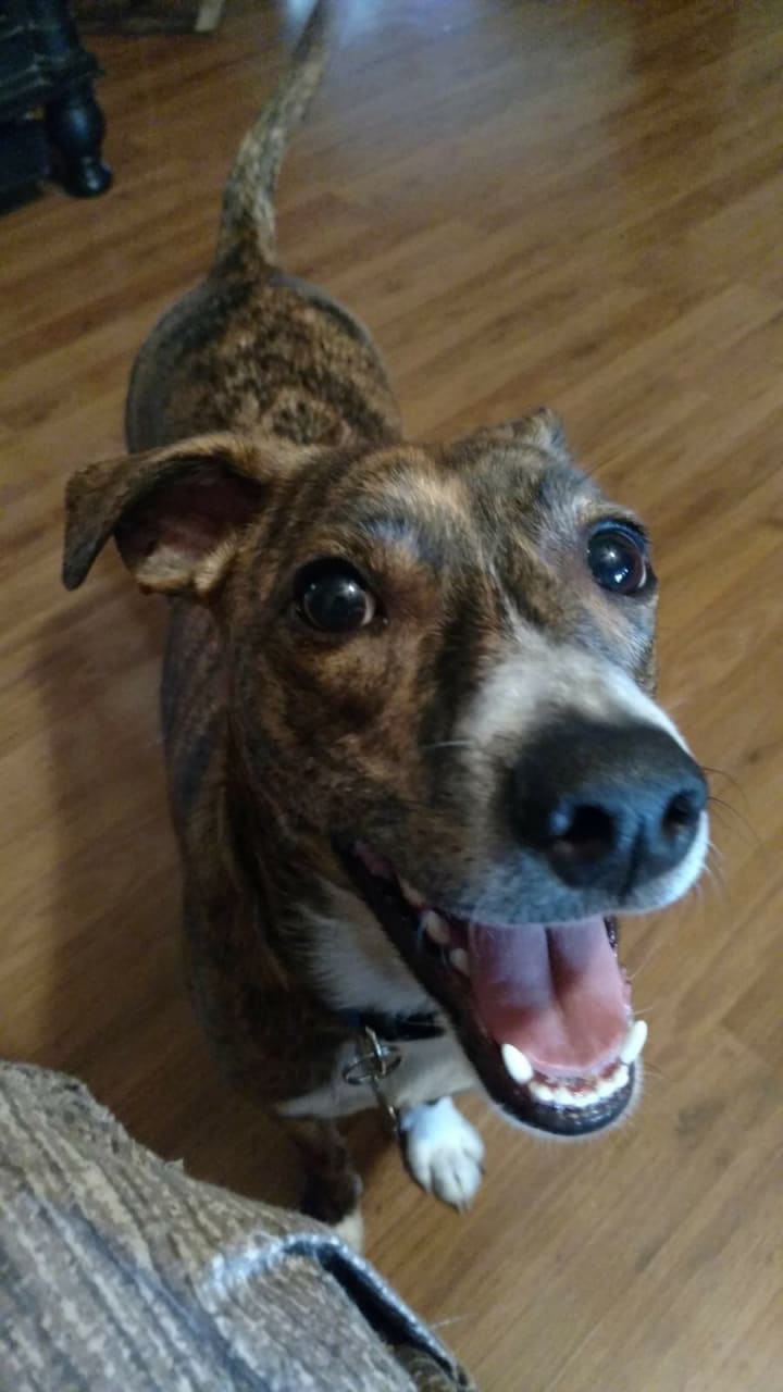 Do you see how perfectly the light shines on his beautiful brindle?
