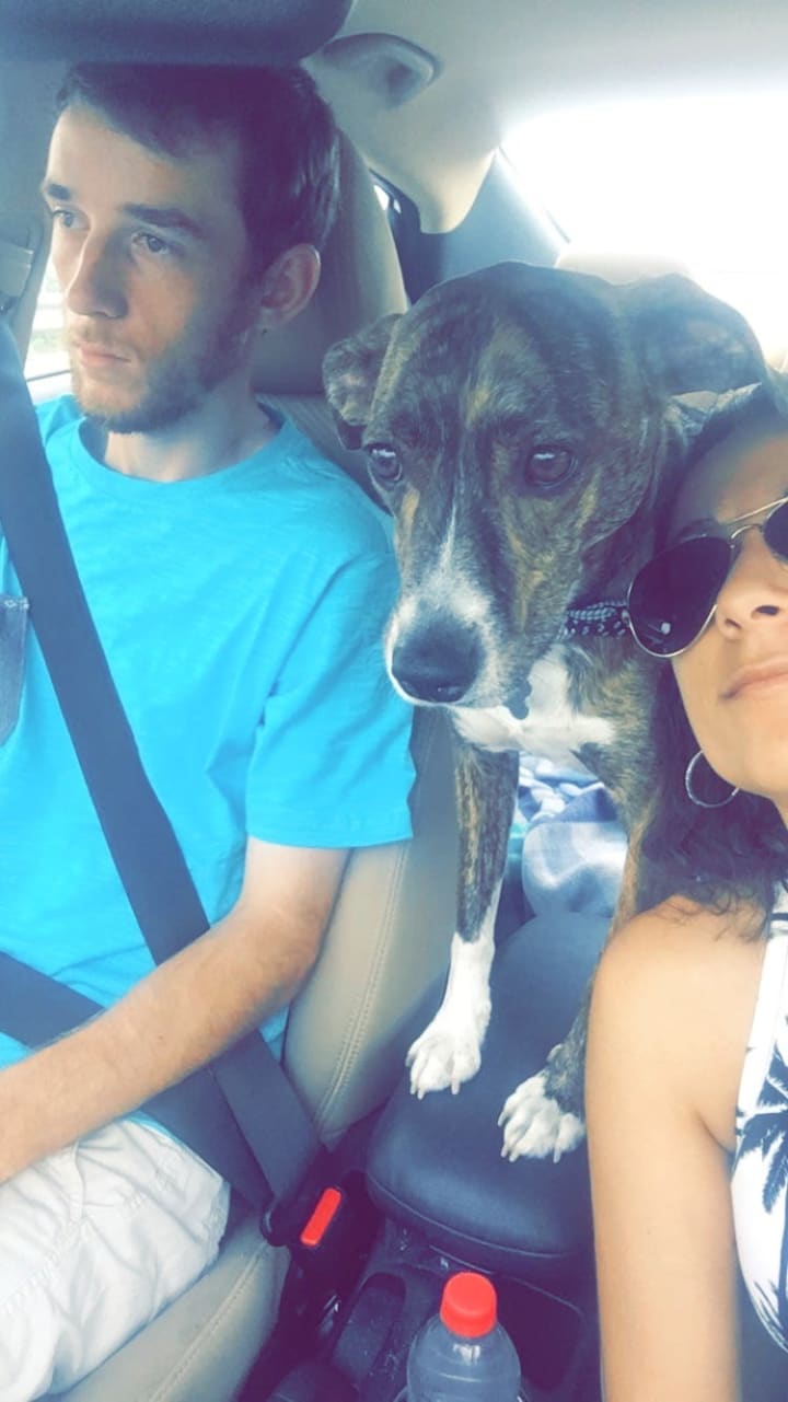 We go everywhere with the Worm! Well, anywhere that's possible. If we can eat somewhere that does take-out, we take him and eat in the car. If we go grocery shopping, we take him and Tyler waits with Worm in the car. If we have to run errands or get coffee, we take him. The only places we don't take Worm is if we go to a sit-down restaurant, the movies, or a long trip to the mall. We hate leaving him home alone locked up in a cage. I'm sure he just lays down and tries to sleep, but in my mind, he's going nuts, barking, and missing us like crazy. I might be delusional, but I love bringing him places and he loves going on the rides so it's a win-win for everyone.