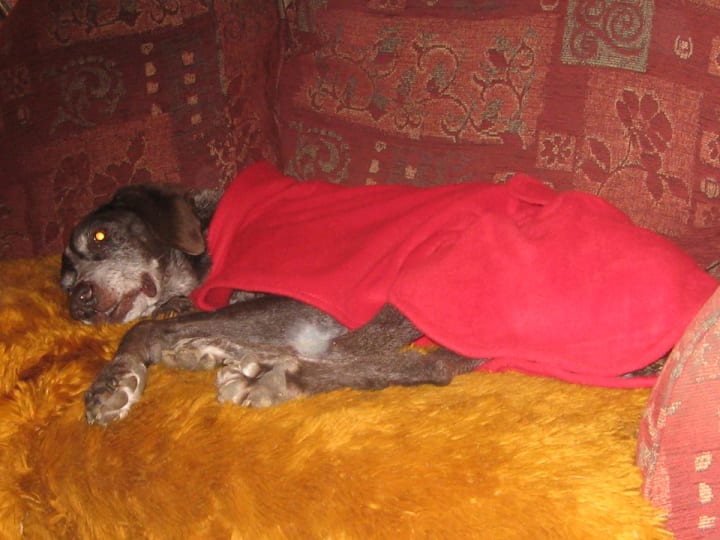 Though she could barely stand, Claire hobbled up to my mom and me. Though she had little strength, she wiggled her cropped tail.