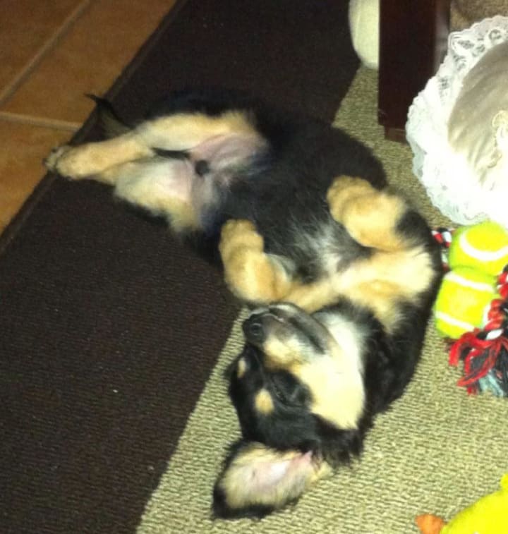 Once my family agreed on my conditions, my husband and I set out to find a puppy for our family. It didn’t take long to locate a rescue. Chewy was the runt of the litter and his mommy rejected him. So he was fed with a bottle instead. Even though I was firm on wanting a female, when the young man placed this 6-week old puppy in my arms, it was love at first heartbeat. There goes the first of my conditions. I held him close to my heart and could not even think about leaving without him. I placed the tiny guy on my husband’s chest and could tell he felt the same way. There was no turning back now. We adopted the tiny 2-lb guy and bought him home.