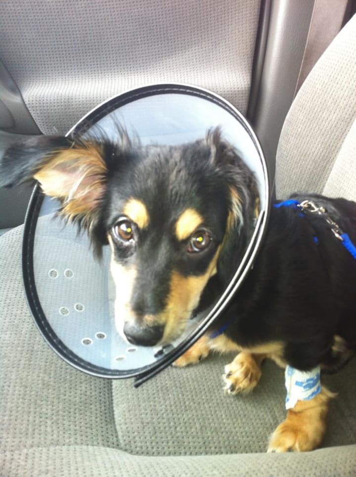 3) Every time the dog went to the potty, her privates and paws needed wiping with baby wipes.