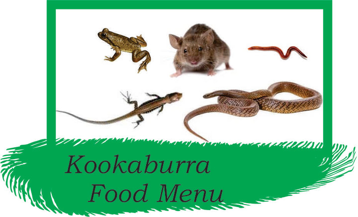 Kookaburras are pretty much carnivorous, eating snakes, lizards, mice, frogs, worms and a range of other insects. Like snipers without the gun, they sit and wait in high areas for their prey and scoop down quickly to catch and kill before they eat. Beating the prey until ready to be swallowed whole.