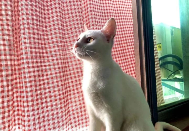 White White White is very small, about 1 year old, very fond of people. She likes people to what extent? Even if she is eating, as long as someone around her called her, she immediately stopped to respond to people; if you touch other cats in front of her not touching her, she will be furiously rushed to hit other people's cats.