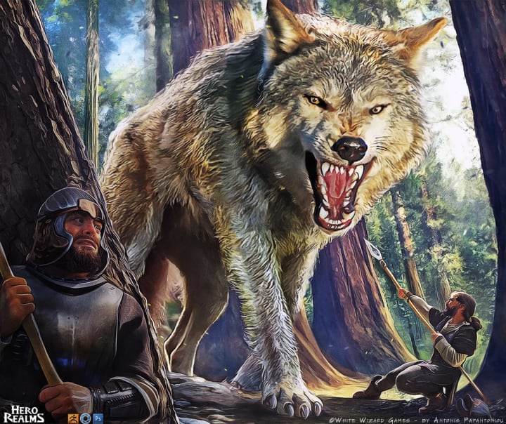 The dire wolf was humongous, the largest wolf on record. It originated from North America and weighed in at 150 pounds. It was 5' tall at its back and had teeth the size of a human thumb. The dire wolf is thought of, today, as myth. It can be seen making an appearance in video games and cartoons, but it once walked the earth in reality.