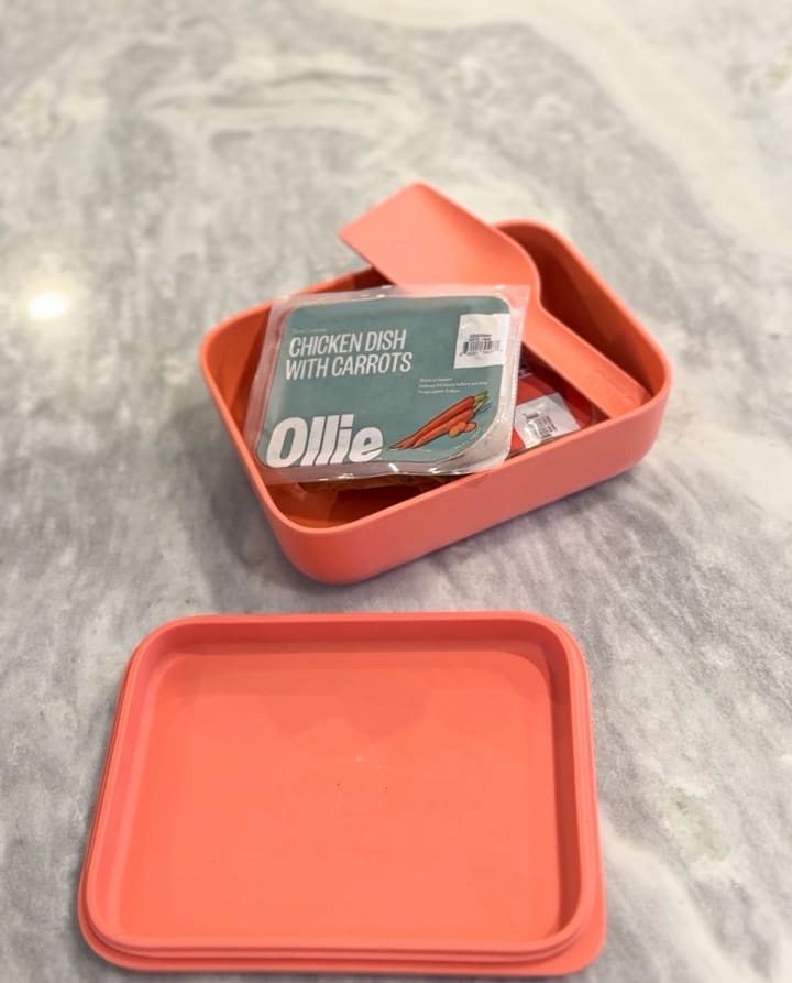 We have tried countless different dog foods in the short time we’ve had him - and he has never had such an immediate positive reaction to any food, until Ollie. Our ordering experience was easy and seamless, honestly even easier than shopping for ourselves. The online Ollie team helps you figure out exactly what your pup needs with just a few questions. Our box arrived in just a couple days, complete with dry ice and sustainable packaging. The food was still completely frozen solid upon arrival - really contributing to our great first impression of the brand.