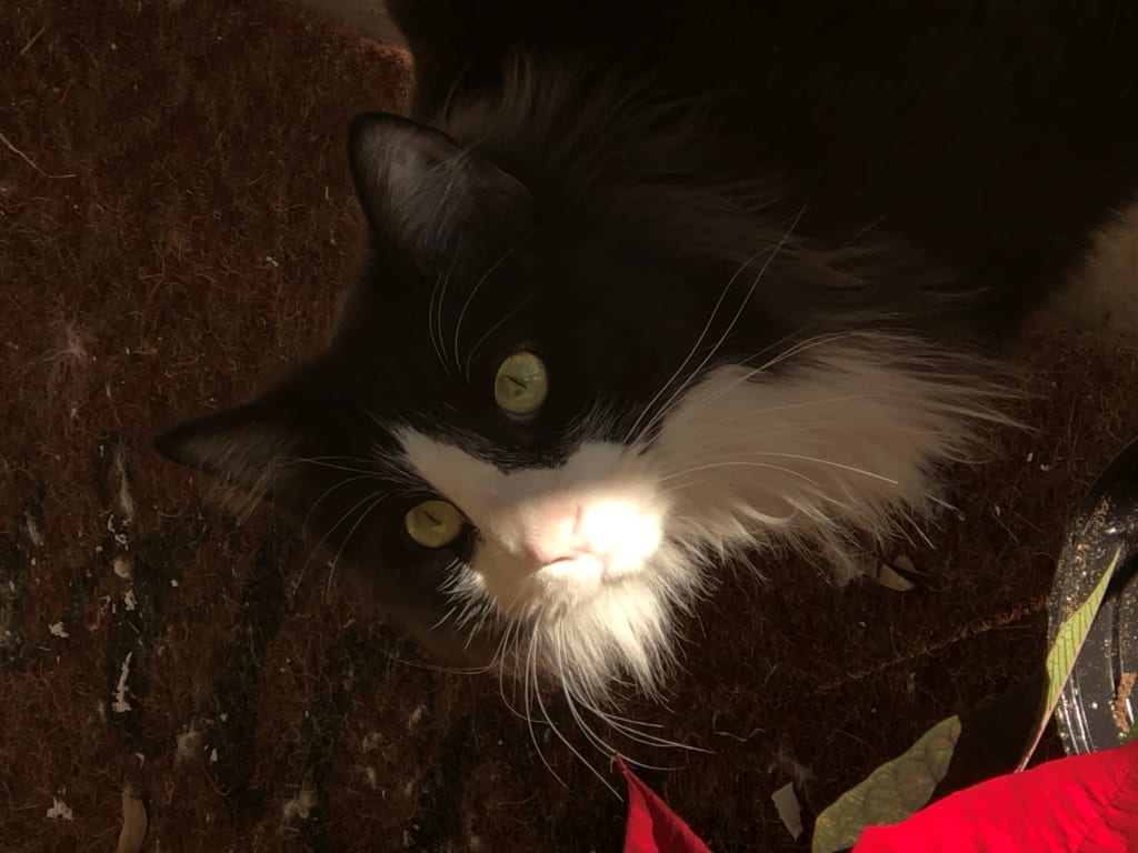 “Hey, this cat just ran up on me that I don’t recognize,” the man said. “Are you missing a black and white cat?”