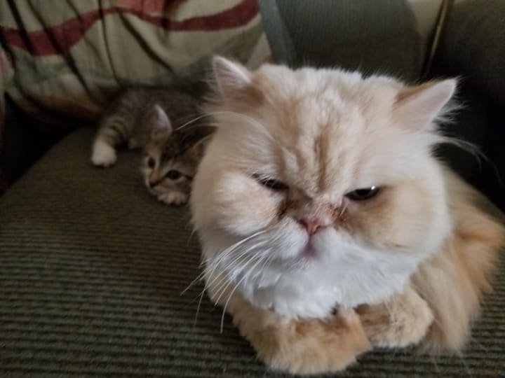 In April of 2020, my elderly Persian cat had to be put down because of all the pain he was in from not functioning anymore. For years, he was loved by my whole family, coming to us when my grandmother became too old to take care of him anymore. 2020 was already a rough year, but on top of Sonny's passing, the whole house was down. Our two-year-old rescue, Blinky, who we had found at about six weeks old abandoned in the middle of an intersection, was lonely and depressed with his grumpy friend now gone. Blinky would wander the house for Sonny before settling to watch the birds by himself.