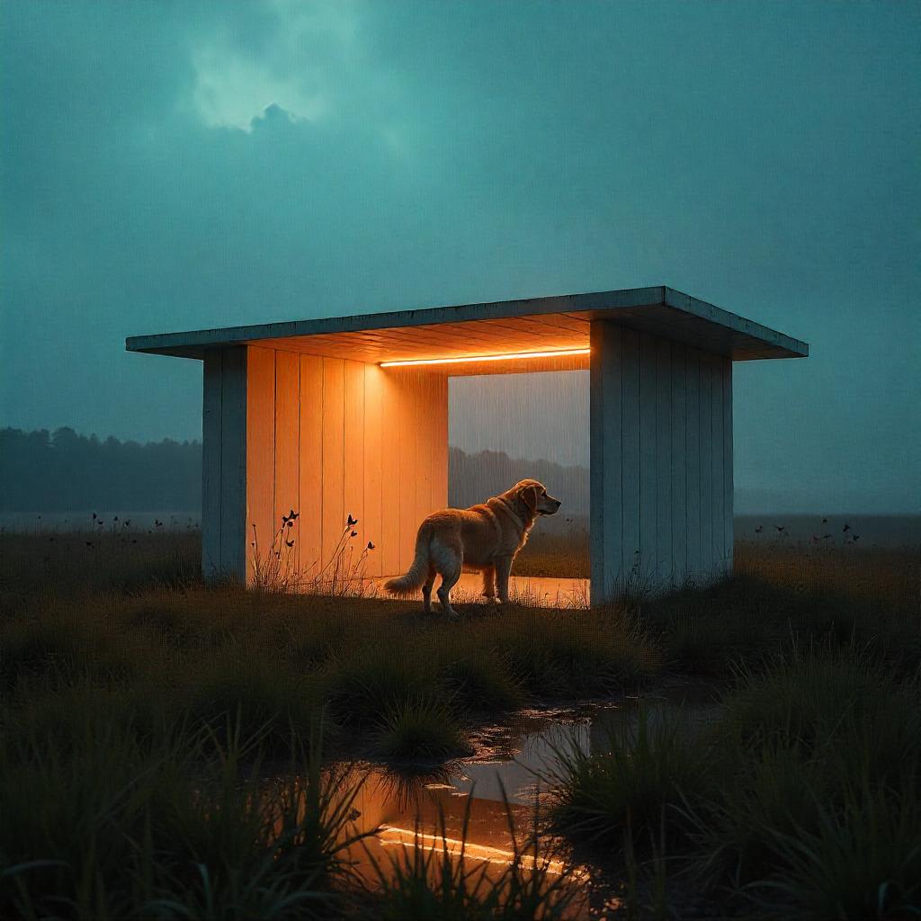 One late autumn afternoon, the sky darkened early. Clouds gathered, heavy with rain. Muji, instead of heading back to her shelter, remained in the field — alert, as if sensing something.